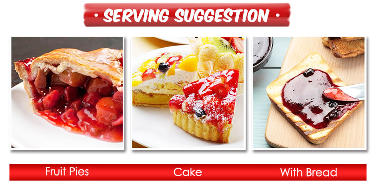 Llenamiento de pasteles y pasteles: a menudo se usa como relleno para pasteles, como el pastel de esponja Victoria, o en pasteles como pérdidas de balón y danés.